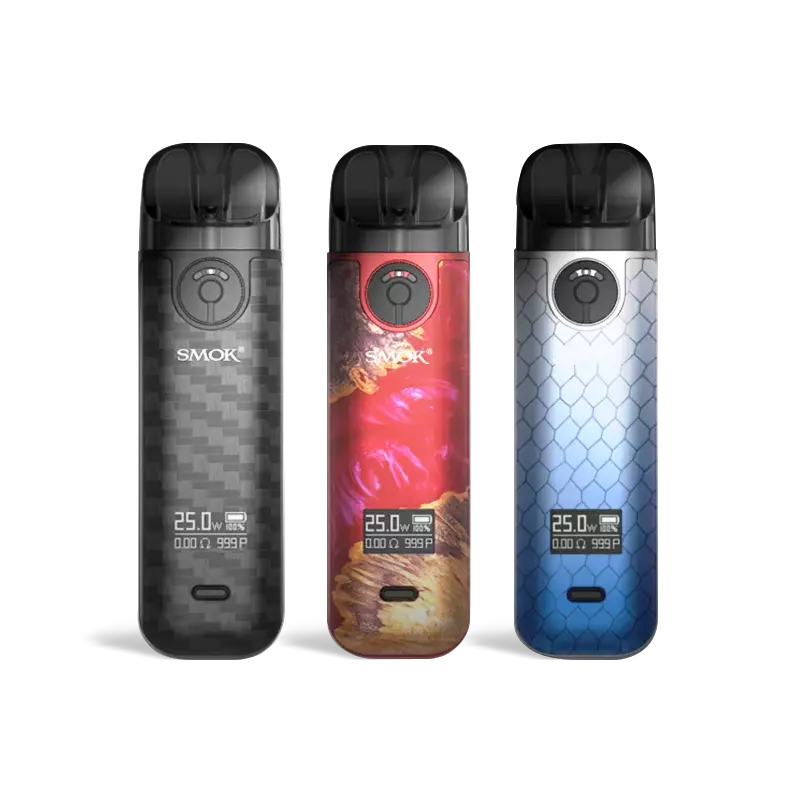 Check out the SMOK NOVO 4 Pod Kit, featuring a 5-25W range, adjustable airflow dial, and utilizes replacement coils in from the SMOK LP1 Coil Series. Constructed from durable zinc-alloy, the chassis is lightweight and portable, perfect for those that are traveling or on-the-go. Adopting an adjustable airflow dial, the SMOK Novo 4 can deliver a controlled stream of air to create the ideal draw. In addition, the NOVO 4 Pod System utilizes a 0.49″ OLED Display Screen to relay any wattage or vaping information and can adjust the wattage between 5-25W with a single button that doubles as an On/Off button. Holding up to 2mL of eJuice or nicotine salt in the magnetic pod, the NOVO 4 utilizes coils from the SMOK LP Coil Series, to deliver satisfying vapor without any pesky leaks.
