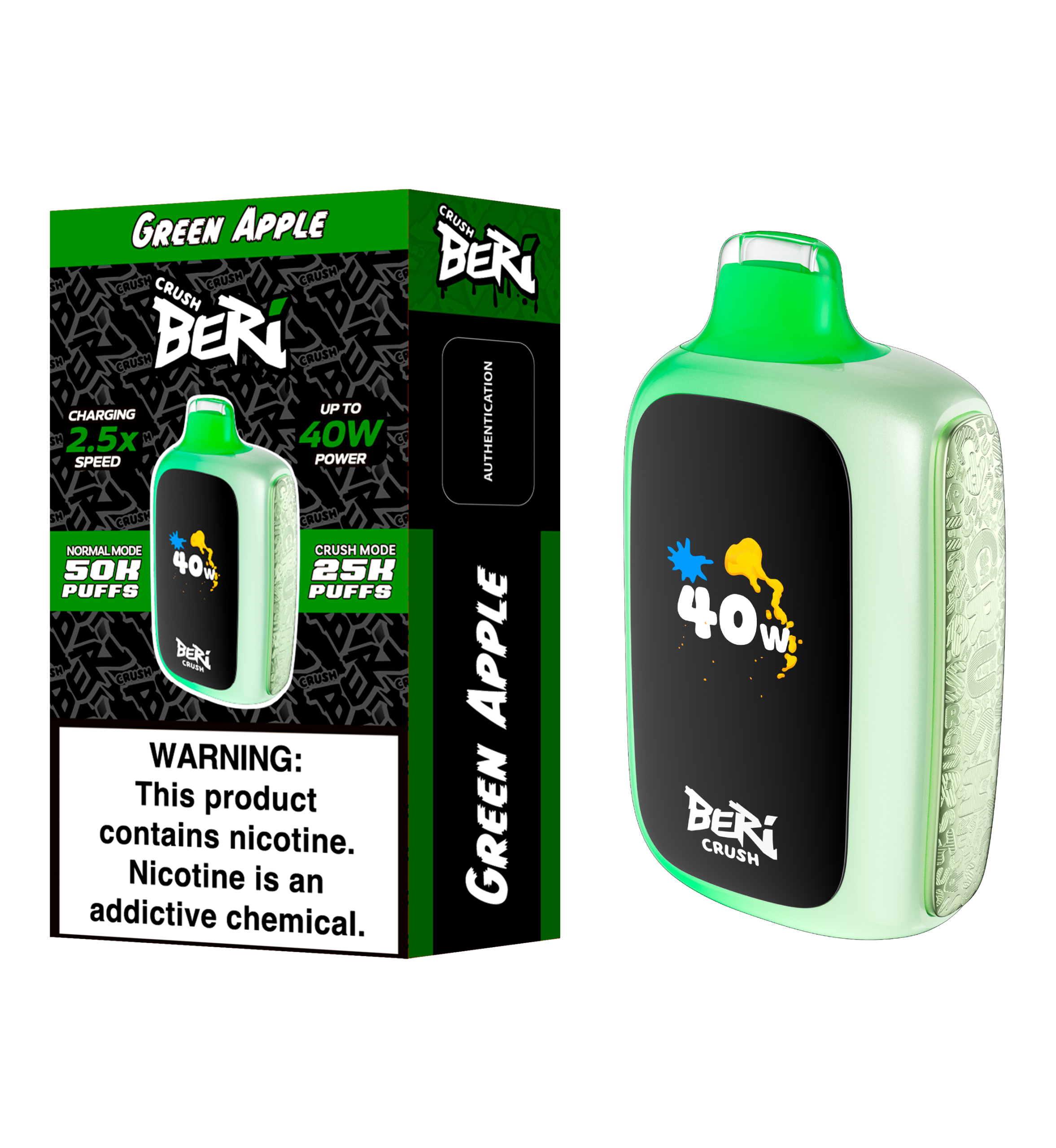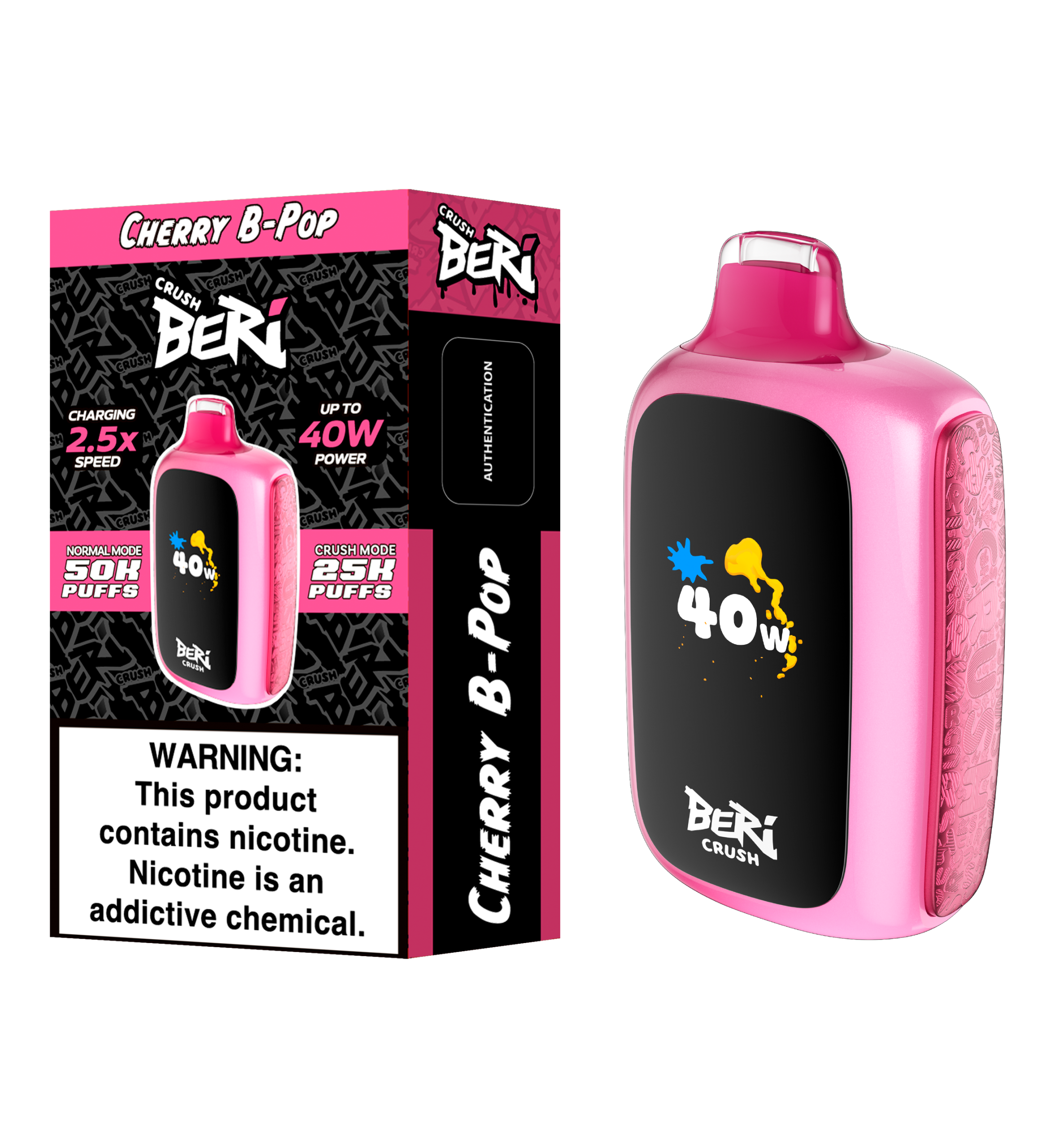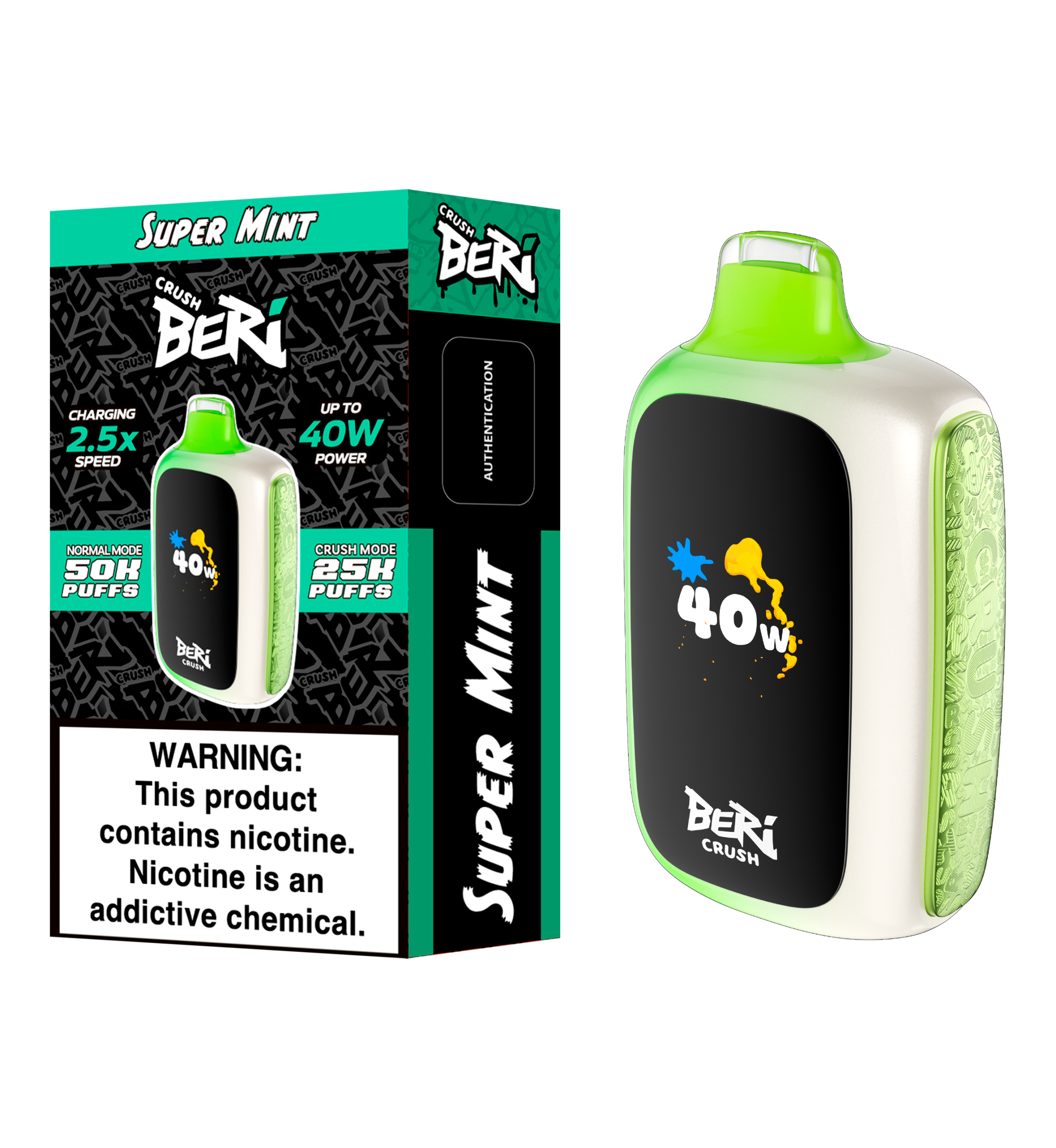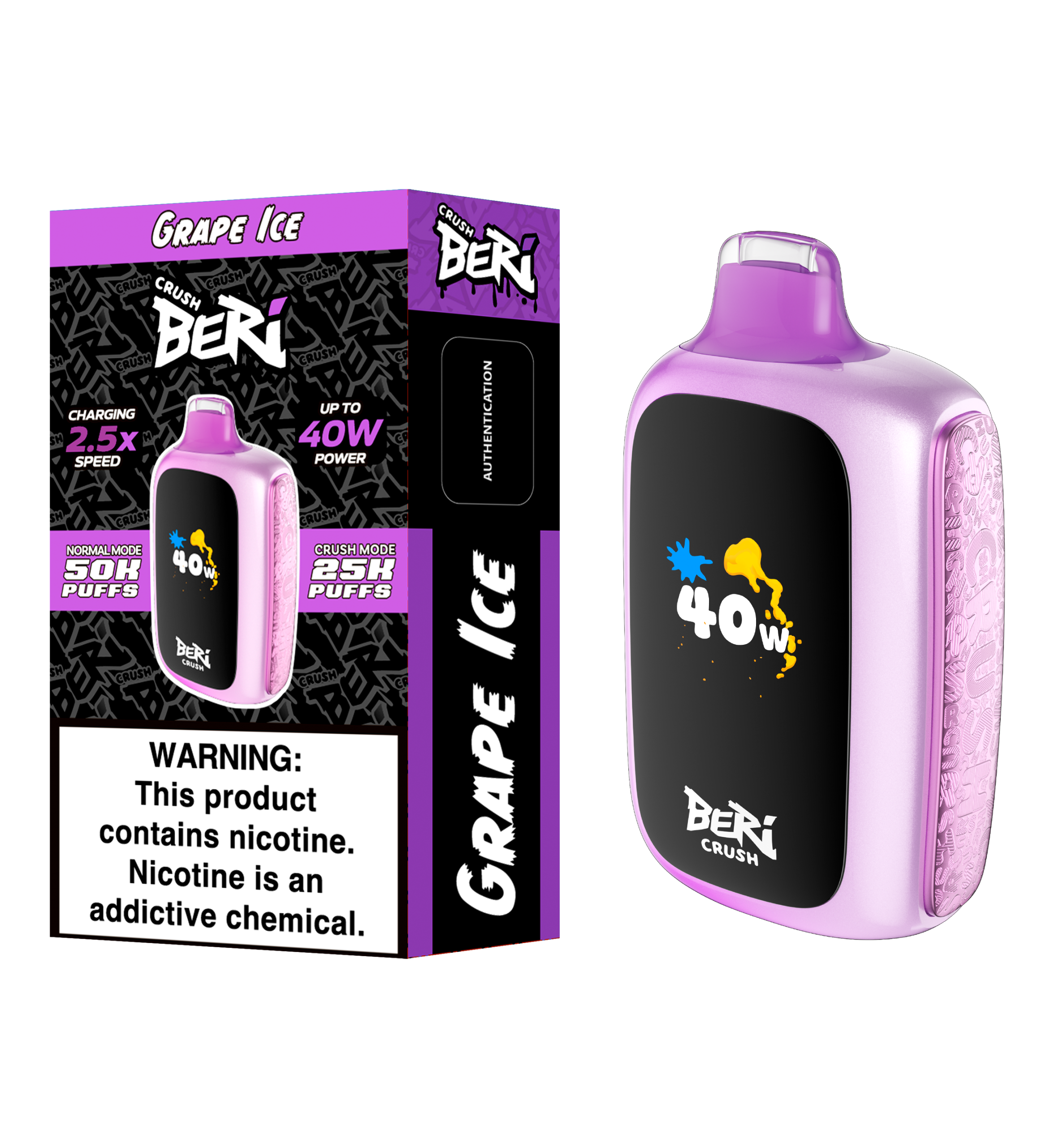 At BERI CRUSH, we understand that every vaping experience is unique. Whether you’re looking for ease or maximum intensity, our auto-adaptive technology adjusts to your inhale, increasing power based on your draw. For those who want full control, simply press the Max Power button to activate Crush Mode, delivering up to 40 watts of intense power. Whether you’re hitting it soft or hard, BERI CRUSH guarantees satisfaction.