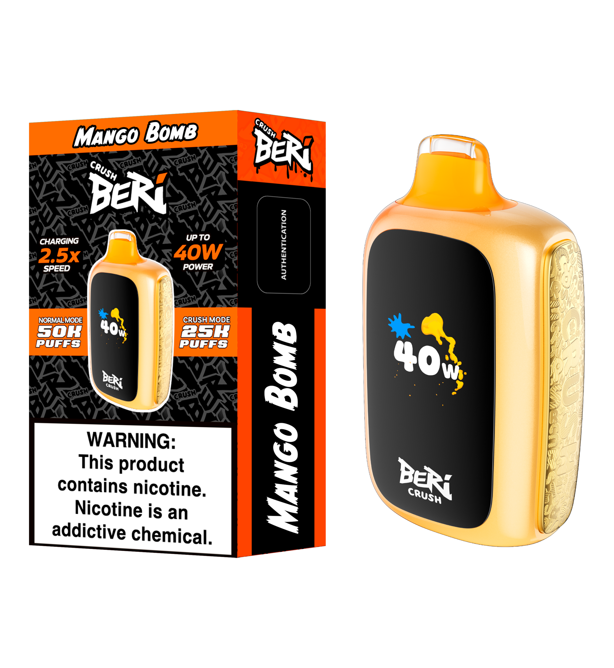 Max Power Activation: Press the button to switch to Crush Mode, activating up to 40 watts for maximum power when you want a more intense hit.